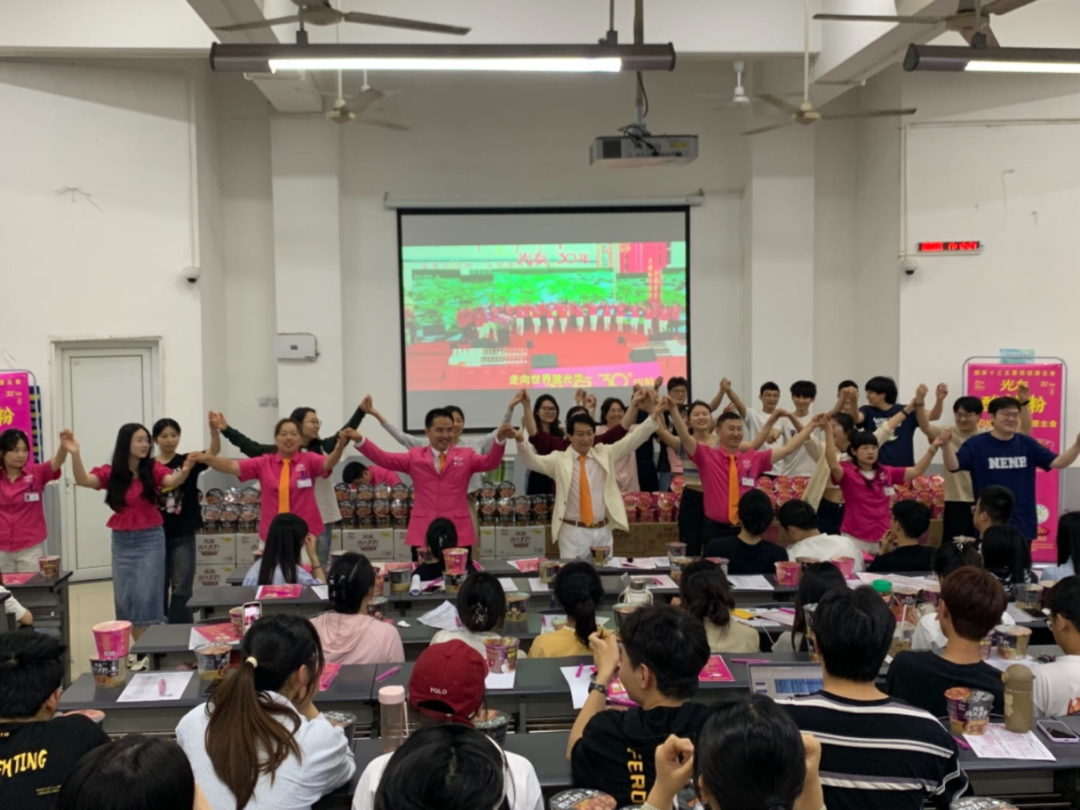 演講過程中,光友薯業(yè)董事長強(qiáng)調(diào),他與光友薯業(yè)始終不忘初心,從未停止過改變紅薯命運(yùn)的偉大愿景,光友薯業(yè)在32年間,共進(jìn)行了六次具有歷史突破性的粉絲革命,先后斬獲國內(nèi)外多項(xiàng)榮譽(yù)與專利,并在不久前全新發(fā)明了全球領(lǐng)先的低GI健康薯類主食——光友綿陽米粉和光友酸辣粉,科學(xué)健康和方便美味完美相融,該類粉絲一經(jīng)亮相,便立即受到了業(yè)內(nèi)外的認(rèn)可與追捧?,F(xiàn)場同學(xué)食指大動,也對光友這個國貨老品牌有了全新的認(rèn)知。