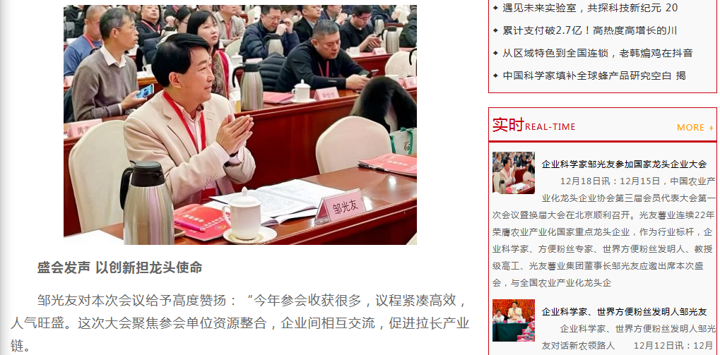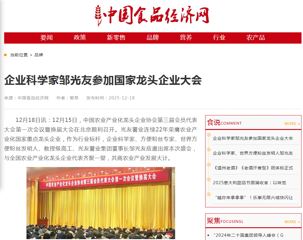 轉(zhuǎn)載中國(guó)食品經(jīng)濟(jì)網(wǎng)-企業(yè)科學(xué)家鄒光友出席國(guó)家龍頭企業(yè)大會(huì)